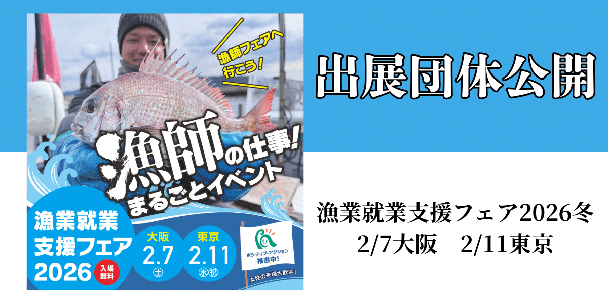 Previous slide Next slide Previous Next 漁師.jpからのお知らせ 2025年12月1日 NEW! 🐟福井県立大学の学生たちと作った、漁師フェアPR動画!~漁師.jpの「スーパーヒーロー」と過ごした2日間~ 2025年11月17日 「AIに奪われない仕事」と調べたら… 20代が漁師セミナーに来た理由 2025年11月5日 「ryoushi.jp漁船安全月間キャンペーン2025」終了のご報告と御礼 漁師.jpからのお知らせ一覧 地域の漁業関係者からのお知らせ 北海道「北海道漁業就業支援フェア2026inさっぽろ(冬)」開催のお知らせ 千葉県[11月30日(日)]令和7年度千葉県農林水産就業相談会 三重県「南伊勢漁師塾×TRITON SCHOOL」開催のお知らせ 地域の漁業関係者からのお知らせ一覧 漁師.jpPRパートナー Xアカウント Tweets by ryoushi_PRP Previous Next 漁師.jp公式SNS 漁師.jp 公式Youtubeチャンネル japantuna 公式Youtubeチャンネル サイト内の情報を探す 検索したいキーワードを入力してください