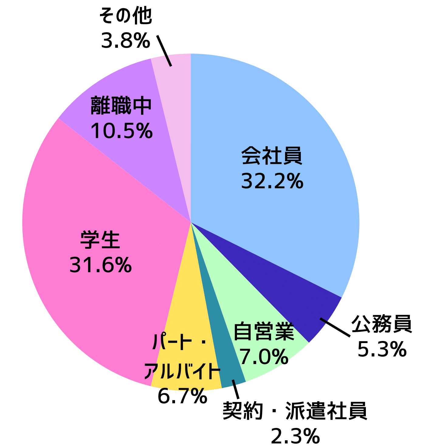 10代~50代まで、漁業就業支援フェアに訪れた来場者の年齢層は幅広く、属性も様々ですが、来場者の半数以上、50.3%が10代、20代の方という結果になりました。学生さんの来場がさらに増えており(31.6%)、漁業に関心のある子供が増えていることがわかります。